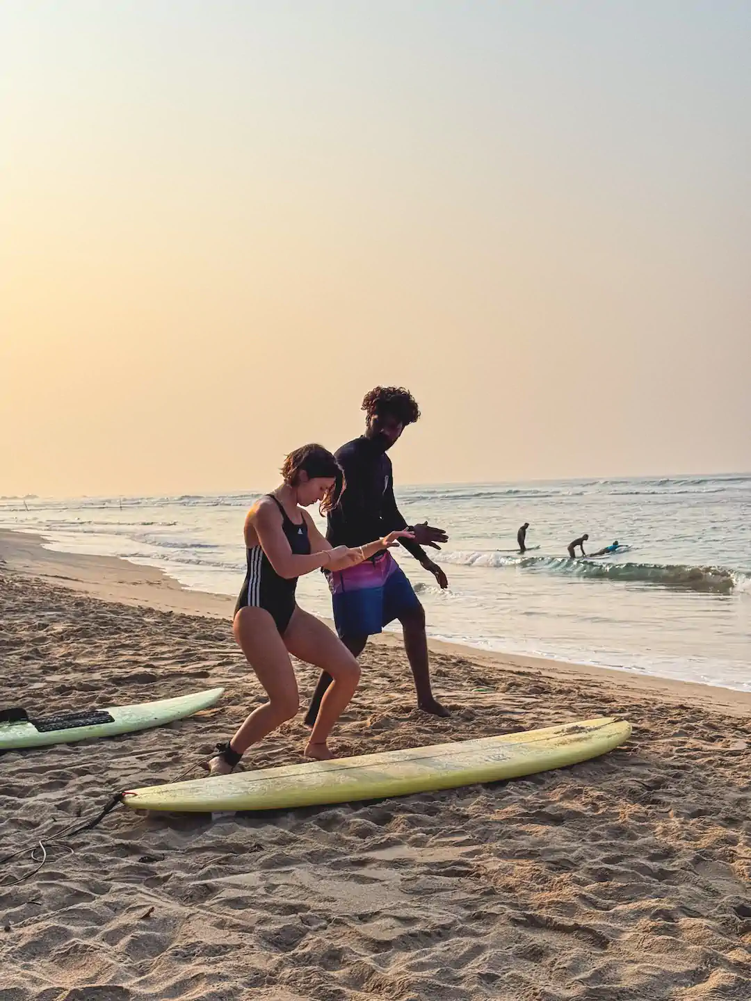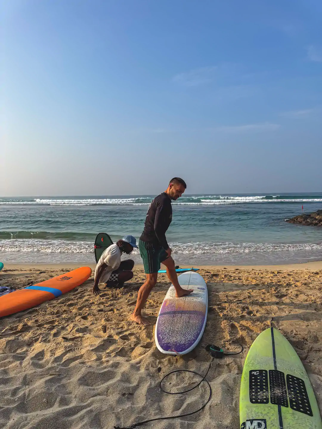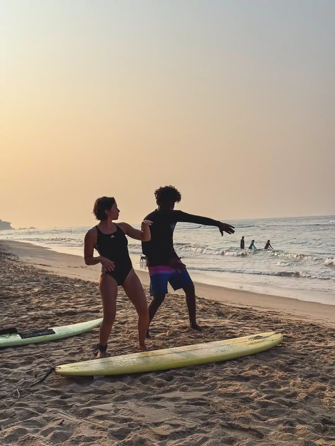 Ashen surf school is amazing and I highly recommend them. I took lessons with Sangeeth, who was kind and patient. After the lessons, I was able to catch waves and stand up on my own on a wide board. They are located on Kabalana beach in Ahangama.